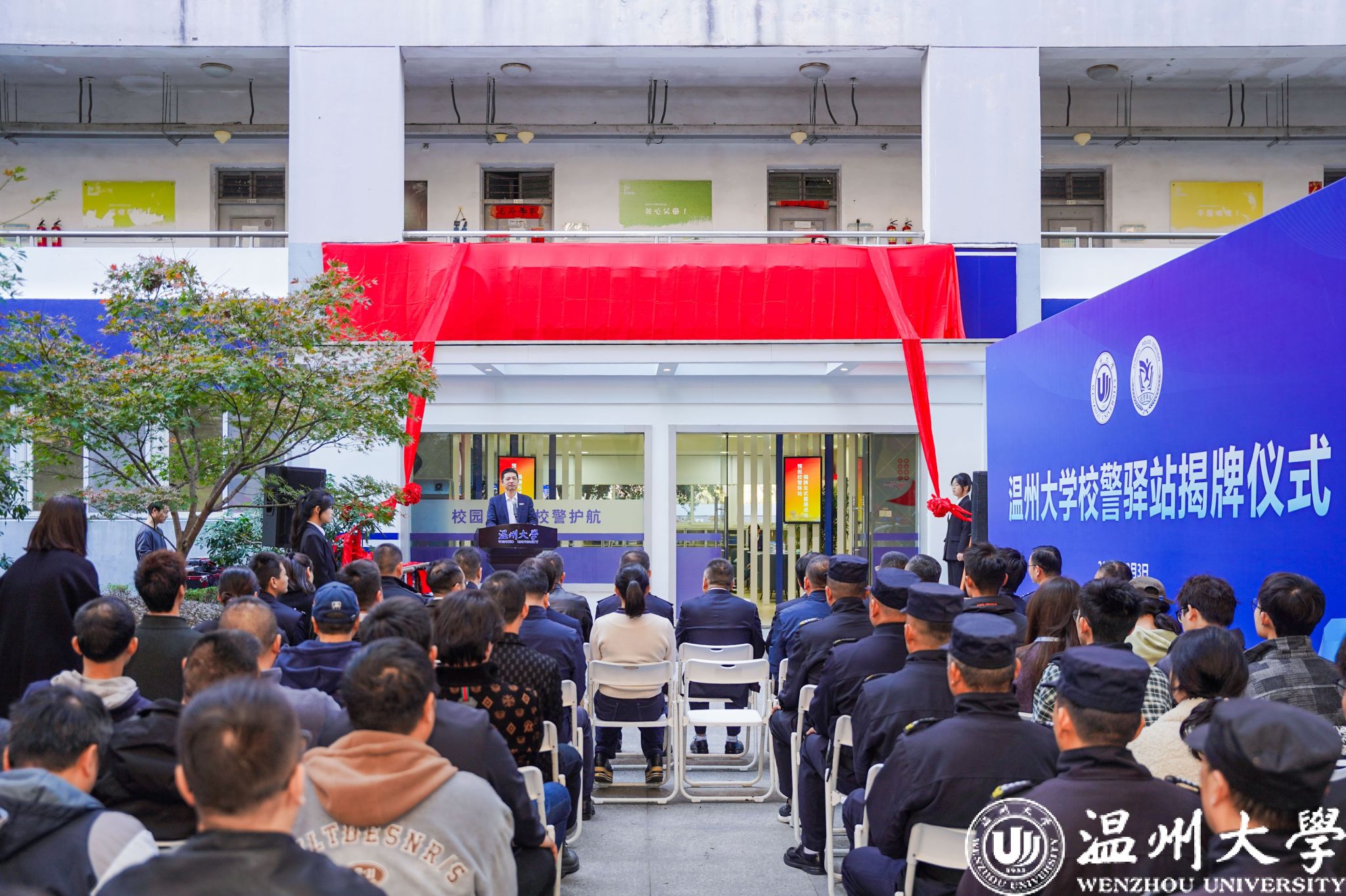 12月3日上午,全市首个“360全景式”校警驿站在我校落成。市教育工委专职副书记、市教育局党委副书记张维凯、市公安局副局长黄伟军、校党委副书记庄兴忠、市政法委、市教育局、市公安局相关部门处室、瓯海区公安分局、茶山街道、茶山派出所、校相关职能部门等领导出席,我校师生、校友、服务商代表参加仪式。