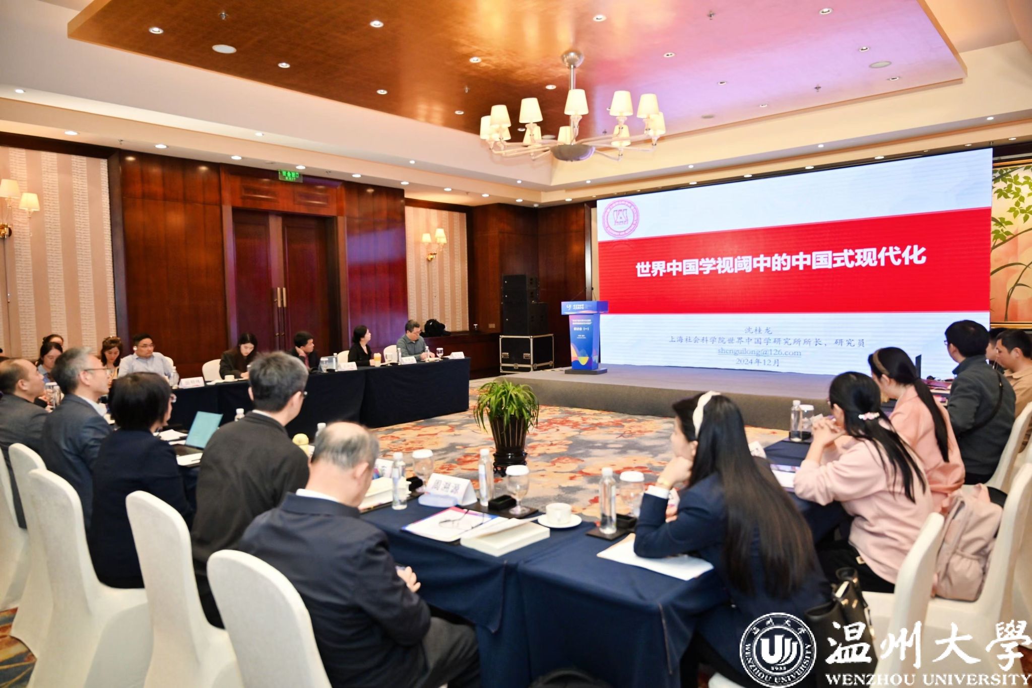 12月4日,由世界中国学研究联合会、中国社会科学院文化发展促进中心主办,温州市温州学研究联合会、8868体育_8868(中国)、温州理工学院联合承办的“讲述中国式现代化道路 加快构建新时代中国学”研讨会在温州举行。世界中国学研究联合会副理事长、秘书长崔建民,市人大常委会主任、温州学研究联合会理事长葛益平出席开幕式并讲话,中国社会科学院学部委员朝戈金,我校党委书记钱强、副校长刘玉侠等领导以及来自全国各地的近百名专家学者参加研讨会。
