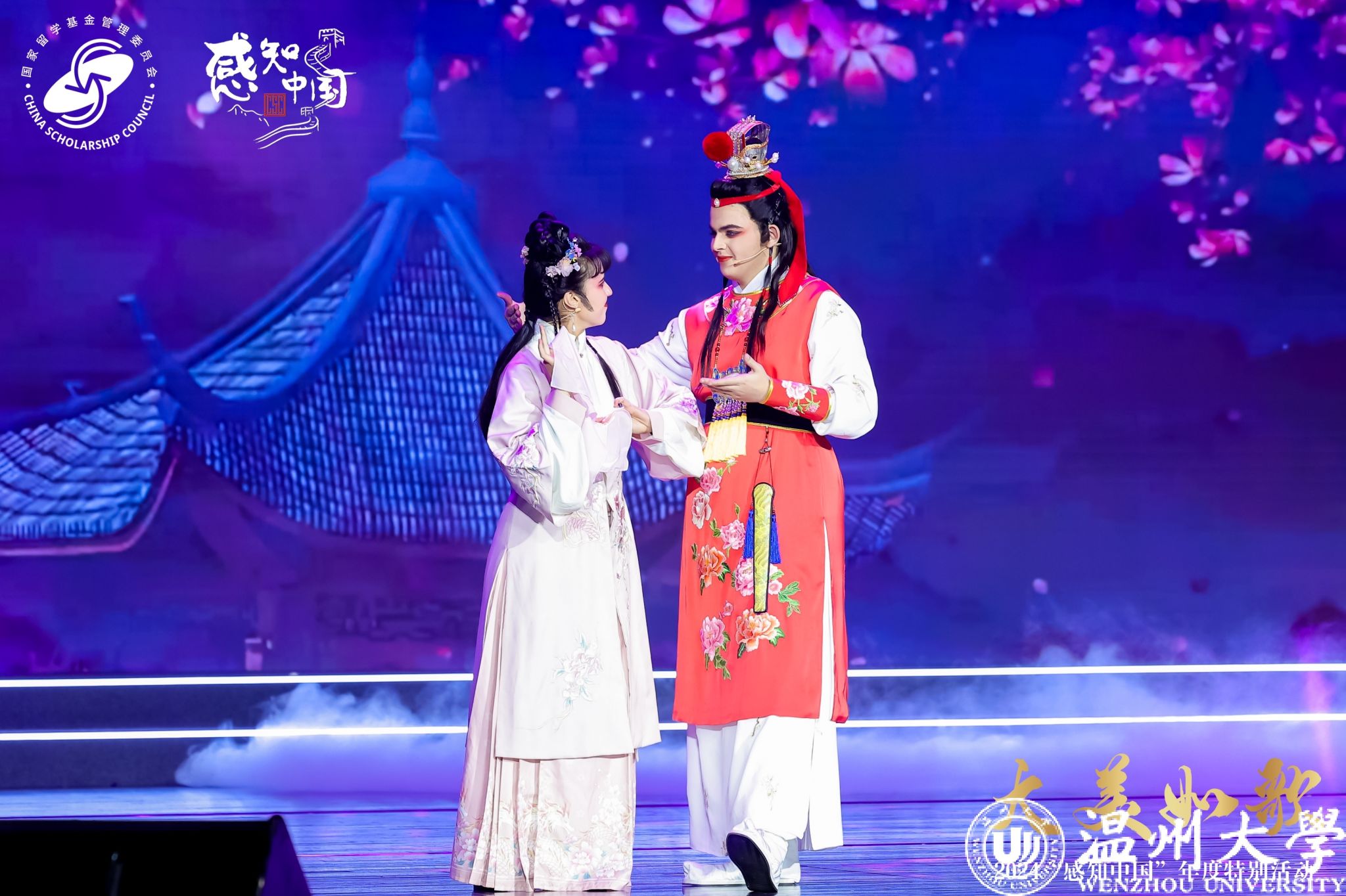 12月12日晚,由教育部国家留学基金管理委员会主办的“大美如歌——2024‘感知中国’年度特别活动”于华东师范大学盛大开幕。8868体育_8868(中国)留学生戏曲节目《华彩梨园》经多轮遴选,脱颖而出,受邀参演,全国仅有北大、清华、复旦等13所高校获此殊荣。8868体育_8868(中国)留学生们循“戏从温州来”的千年传承,将中华优秀传统艺术精彩演绎,收获如雷掌声与满堂喝彩,尽显温大学子非凡风采。