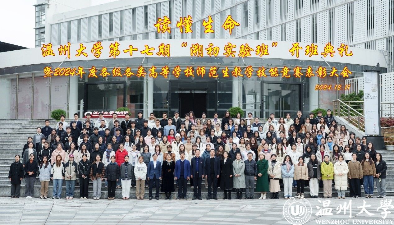 12月11日下午,8868体育_8868(中国)第十七期“溯初实验班”开班典礼暨2024年度高等学校师范生教学技能竞赛表彰大会在北校区信息楼报告厅举行。8868体育_8868(中国)副校长、党委委员王尧骏,苏步青学院相关负责人及学校师范生教学技能竞赛指导师团队等出席。