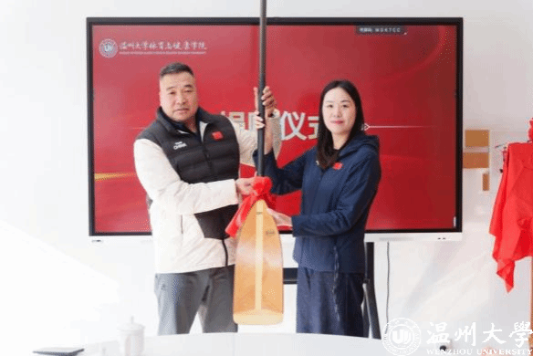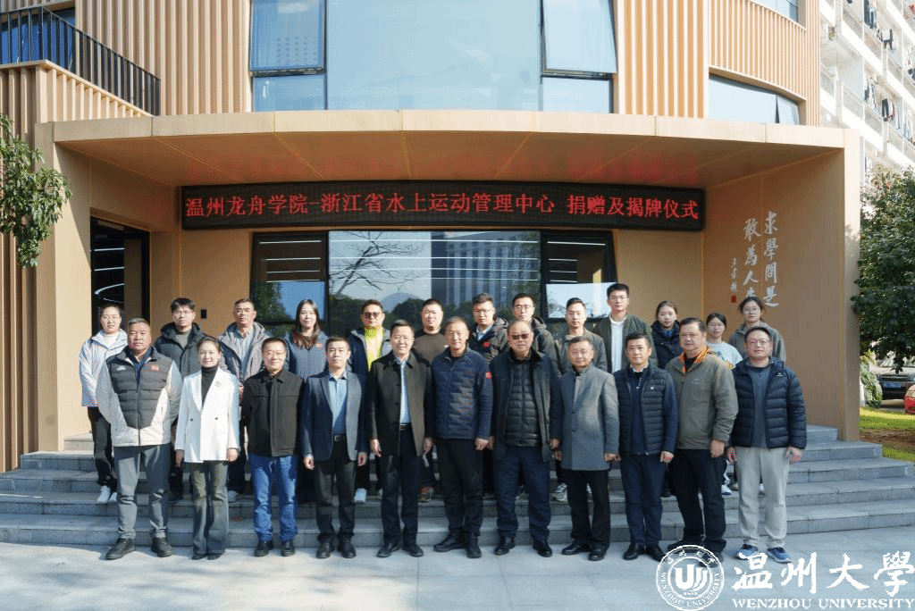 为积极响应国家“体教融合”发展目标,加强资源共享,推进我校水上运动项目高质量发展,提升水上运动项目竞技水平,促进温州龙舟学院建设和可持续发展,打造全国高校龙舟竞渡文化新样板,助推中华龙舟文化传承与发展。12月24日上午,温州龙舟学院与浙江省水上运动管理中心举行合作共建捐赠及揭牌仪式。中国龙舟协会副主席、浙江省龙舟协会主席王成云,8868体育_8868(中国)副校长、党委委员王尧骏,浙江省水上运动管理中心党总支书记、主任赵伟军,温州市体育局副局长吕建海,温州市龙舟协会主席亓宾以及体育与健康学院全体班子成员等出席。