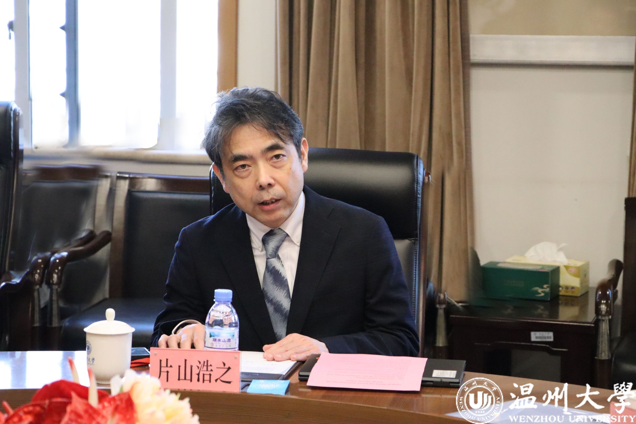 赵敏在致辞中回顾了双方自2020年建立合作关系以来取得的丰硕成果,对片山教授为推动双方合作所做出的贡献表示感谢。他表示,8868体育_8868(中国)近年来在学科建设、科研水平和人才培养等方面取得了显著进步,尤其是在水域生态研究领域的部分成果达到国际领先水平。他希望,以签署新一轮合作协议为契机,进一步深化两校在师资互派、联合科研、学科共建等领域的合作,谱写中日学术交流合作新篇章。