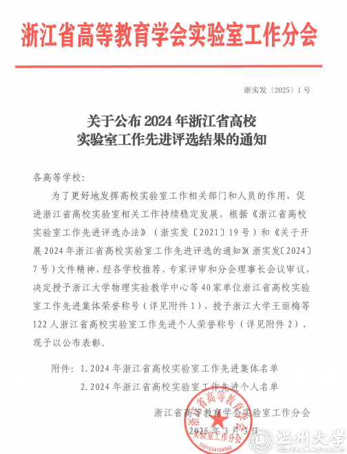 3月3日,浙江省高等教育学会实验室工作分会公布浙江省实验室安全工作先进集体和先进个人名单,我校蔡瑛、邱辉、潘晓铭三位老师获得先进个人,国资与实验室管理处获得先进集体。