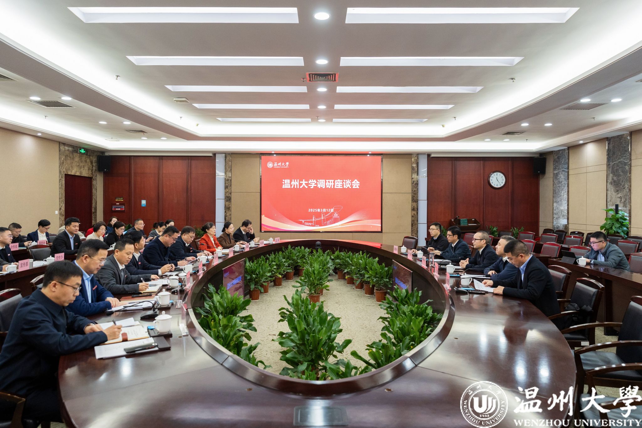 3月12日,温州市人民政府党组成员、副市长黄阳栩一行来校调研指导工作。市委教育工委专职副书记、市教育局党委副书记张维凯,瓯海区人民政府副区长、党组成员张昶等陪同调研。校党委书记钱强主持座谈会。