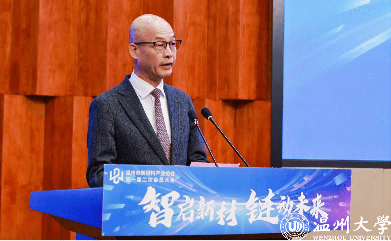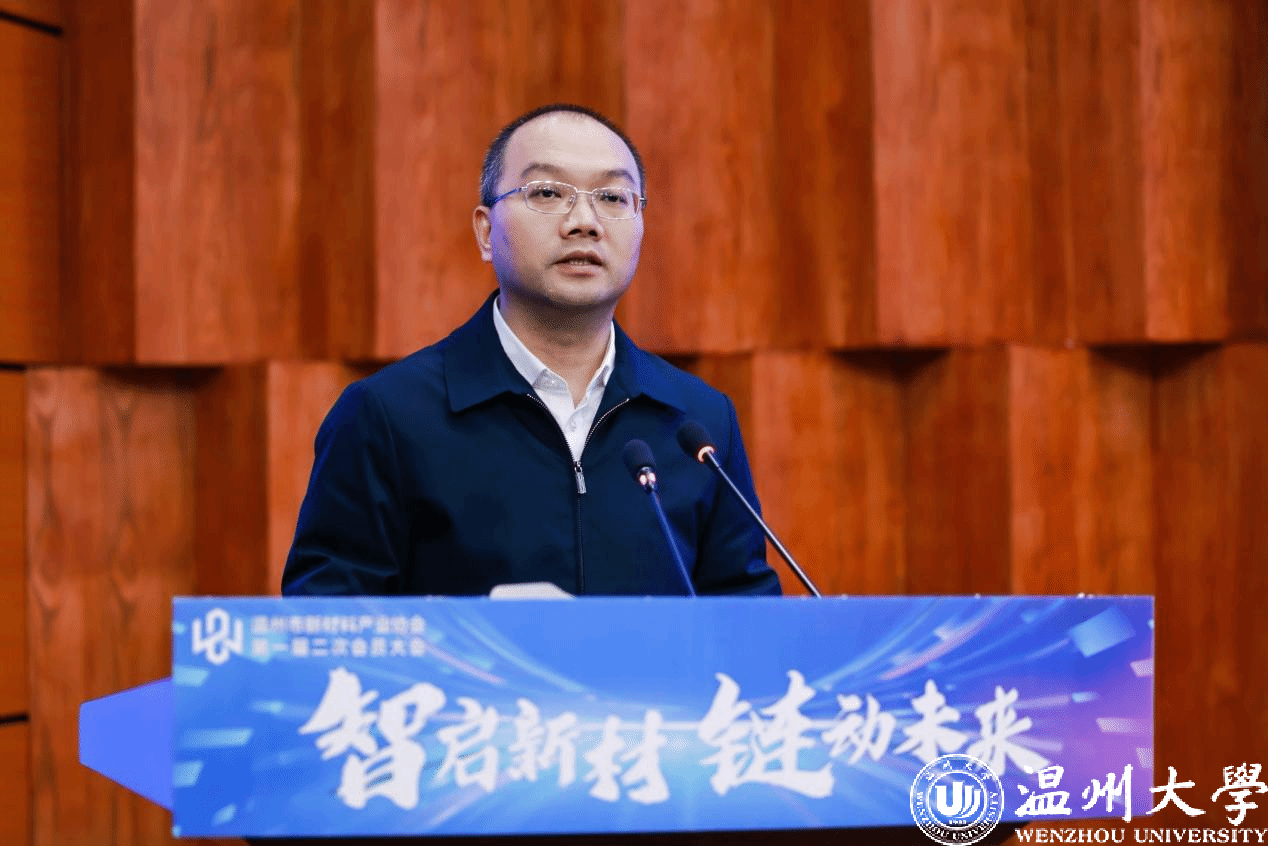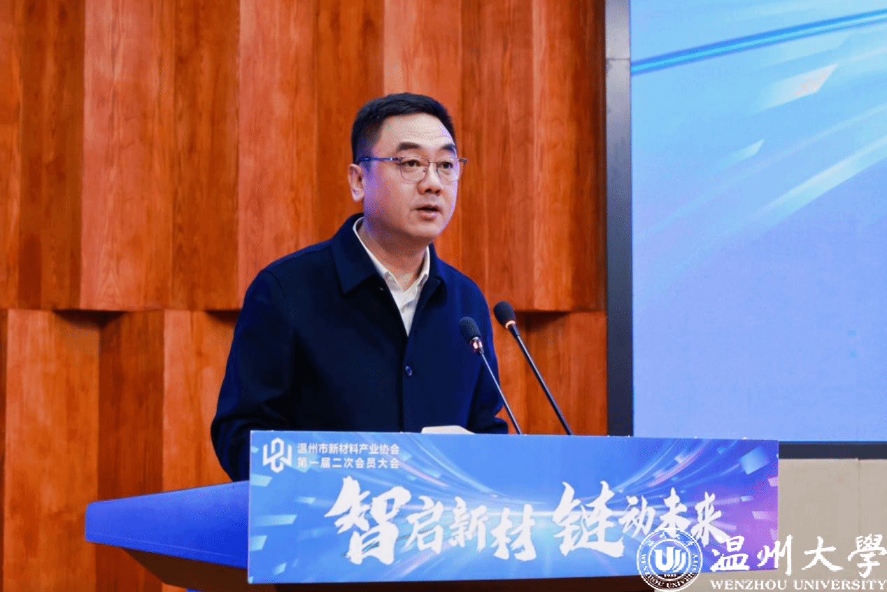 杨辉致辞,他指出,敢为天下先的温州,正用民营经济的“四千精神”书写着新材料产业创新的崭新篇章。