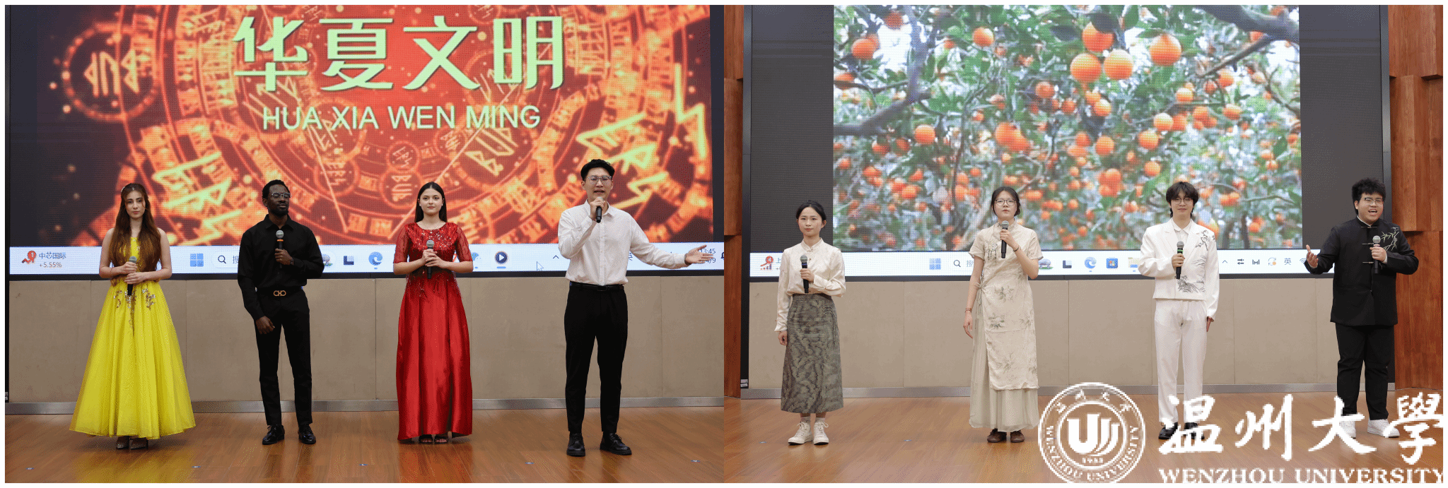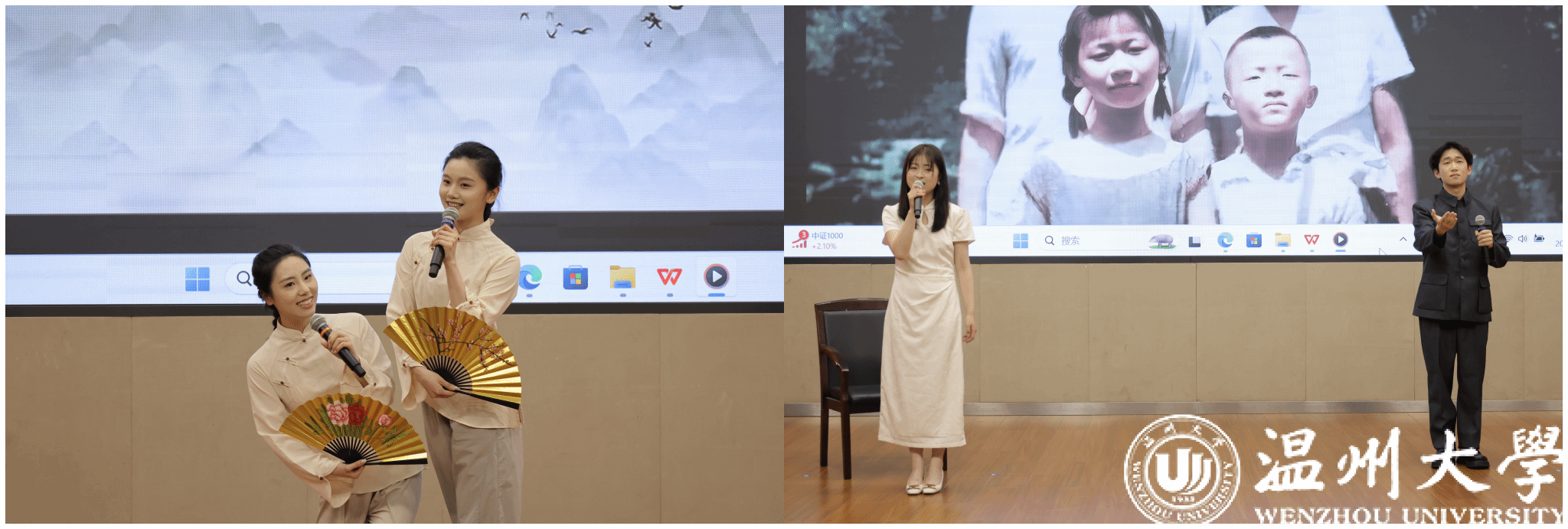 留学生的表现更是精彩夺目。平上去入,抑扬顿挫,每一个发音都是一个高难的挑战;饱满的热情,深沉的情感,每一处演绎都是一次文化的体认。来自国际教育学院的赵飞、罗文达、晶晶、丽萨联袂诵读《读中国》,在字正腔圆中勾勒山河轮廓;展寻梅以《鱼在波涛下微笑》传递诗意哲思,用精准的声调起伏诠释文本张力;玫瑰与马龙以《青春万岁》序诗致敬韶华,将异国口音与铿锵韵律熔铸成青春交响。不仅展示了我校国际中文教育的成果,也是中外文明互鉴的生动实践。
