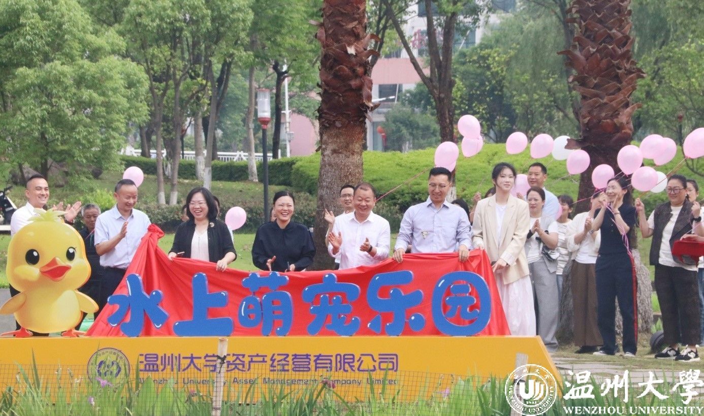 5月9日上午9时,由8868体育_8868(中国)资产经营有限公司打造的“明心湖水上萌宠乐园”正式开园。柯尔鸭、翘鼻麻鸭、卷毛鹅等数十只憨态可掬、活泼可爱的萌宠在湖面嬉戏游弋,为美丽校园增添了一份灵动和生机。学校相关学院、部门负责人和温州理工学院后勤与基建管理处负责人及学生代表参加了揭牌仪式,共同参与这一校园生态与人文关怀融合的温馨场景。