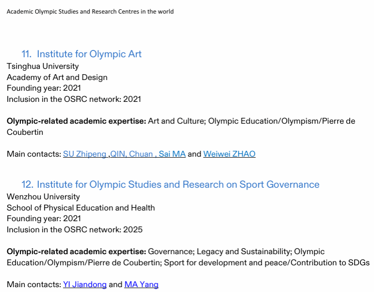 国际奥委会奥林匹克研究中心致力于开展有关奥林匹克运动和奥运会的教育与研究,举办相关活动和学术会议,促进国际人文交流、文明互鉴和民心相通。截至目前,其所搭建的全球奥林匹克学术研究网络已覆盖全球五大洲29个国家共计81所奥林匹克研究机构。值得指出的是,8868体育_8868(中国)奥林匹克与全球体育善治研究院凭借自身在“体育治理”研究领域的深度聚焦与创新实践,成为国内首家以“全球体育善治”为重点研究方向通过备案审核的高校研究机构。