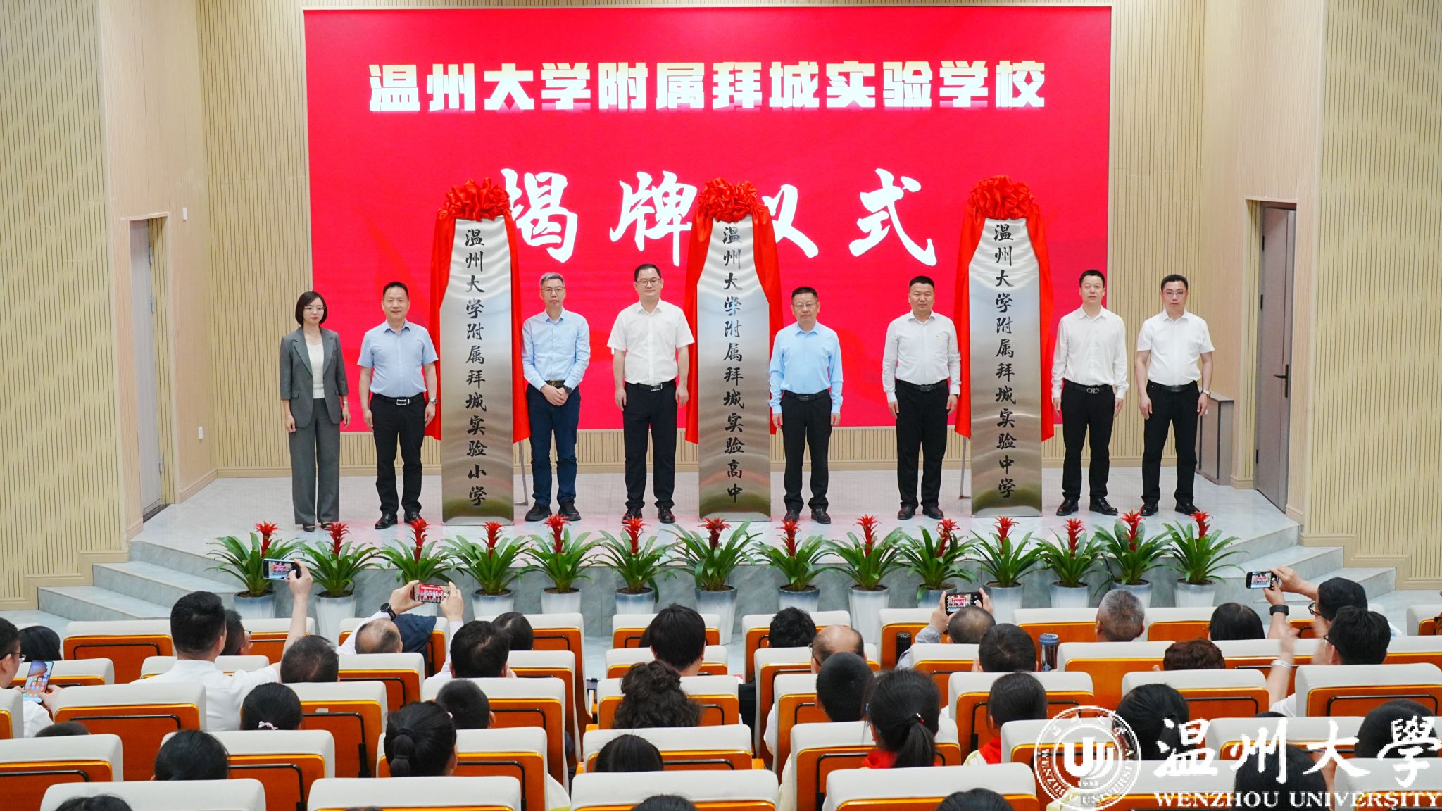 仪式现场,8868体育_8868(中国)副校长王军,拜城县委副书记、教育党工委书记、温州市援疆指挥部党委书记、指挥长姚海,阿克苏地区教育工会主席高鹏慧,拜城县委常委、组织部部长朱泽等共同为三所附属学校揭牌。拜城县教育系统代表、师生、家长及8868体育_8868(中国)专家团队等200余人共同见证了这一重要时刻。