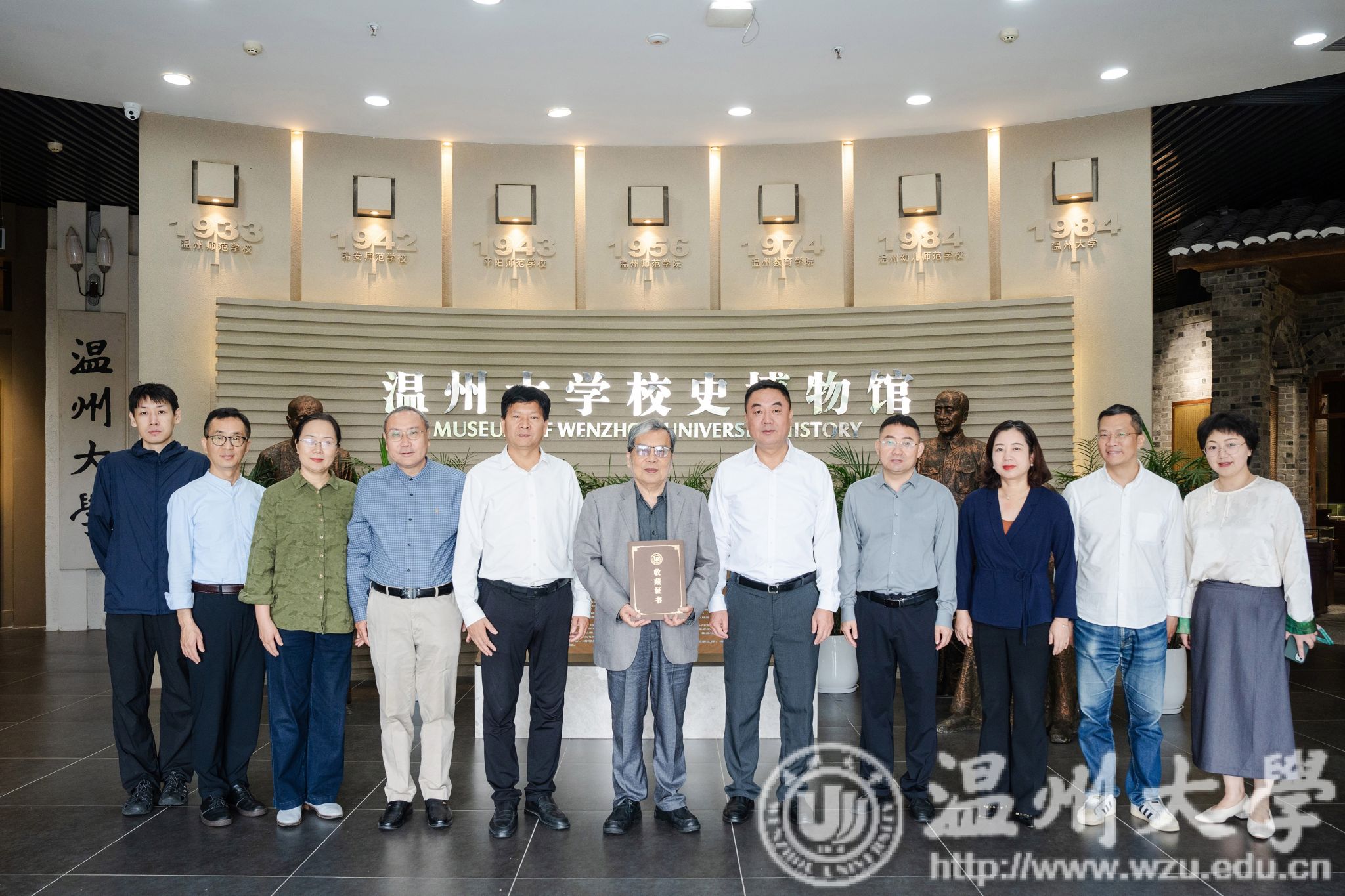 在校史博物馆内,钱强讲述了学校从初创时期的艰辛探索到如今跨越发展的奋进历程,展现温大人一脉相承的奋斗精神。当一行人驻足在叶长海校友捐赠的展柜前时,往昔的回忆与当下的情谊在此交汇,众人合影留念,记录下这珍贵瞬间。钱强对叶长海长期以来捐书捐物、心系母校的善举致以诚挚谢意。同时,钱强还特别介绍了北京市人民政府天安门地区管委会向8868体育_8868(中国)赠送的办学90周年校庆日在天安门广场升挂的国旗,讲述了学校围绕这面国旗打造的国旗文化,让爱国荣校情怀在交流中愈发浓厚。