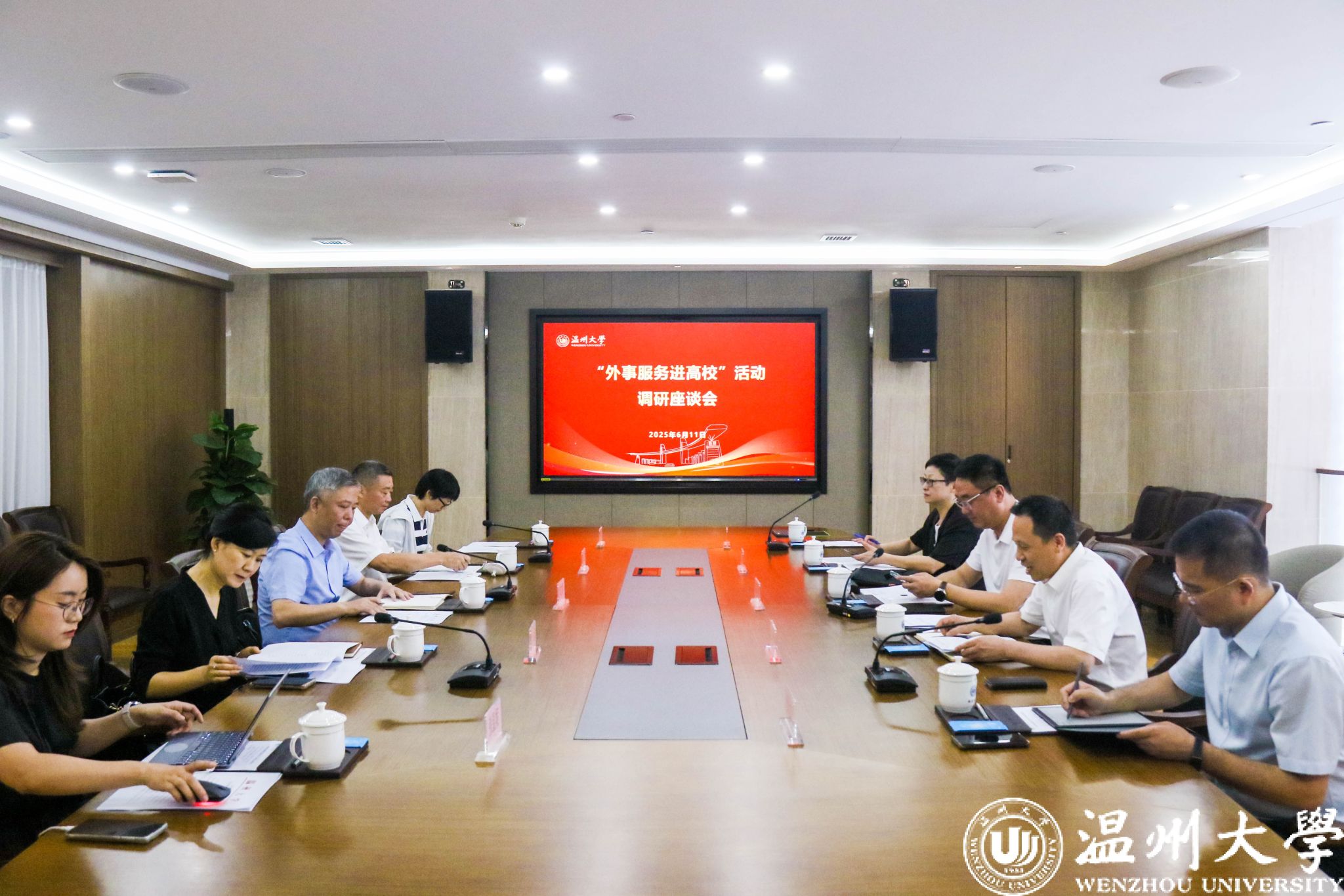 6月11日上午,温州市外办党组书记黄方雷一行到访我校调研并召开“外事服务进高校”交流座谈会。校领导钱强、王舜出席,共商校地外事服务工作。