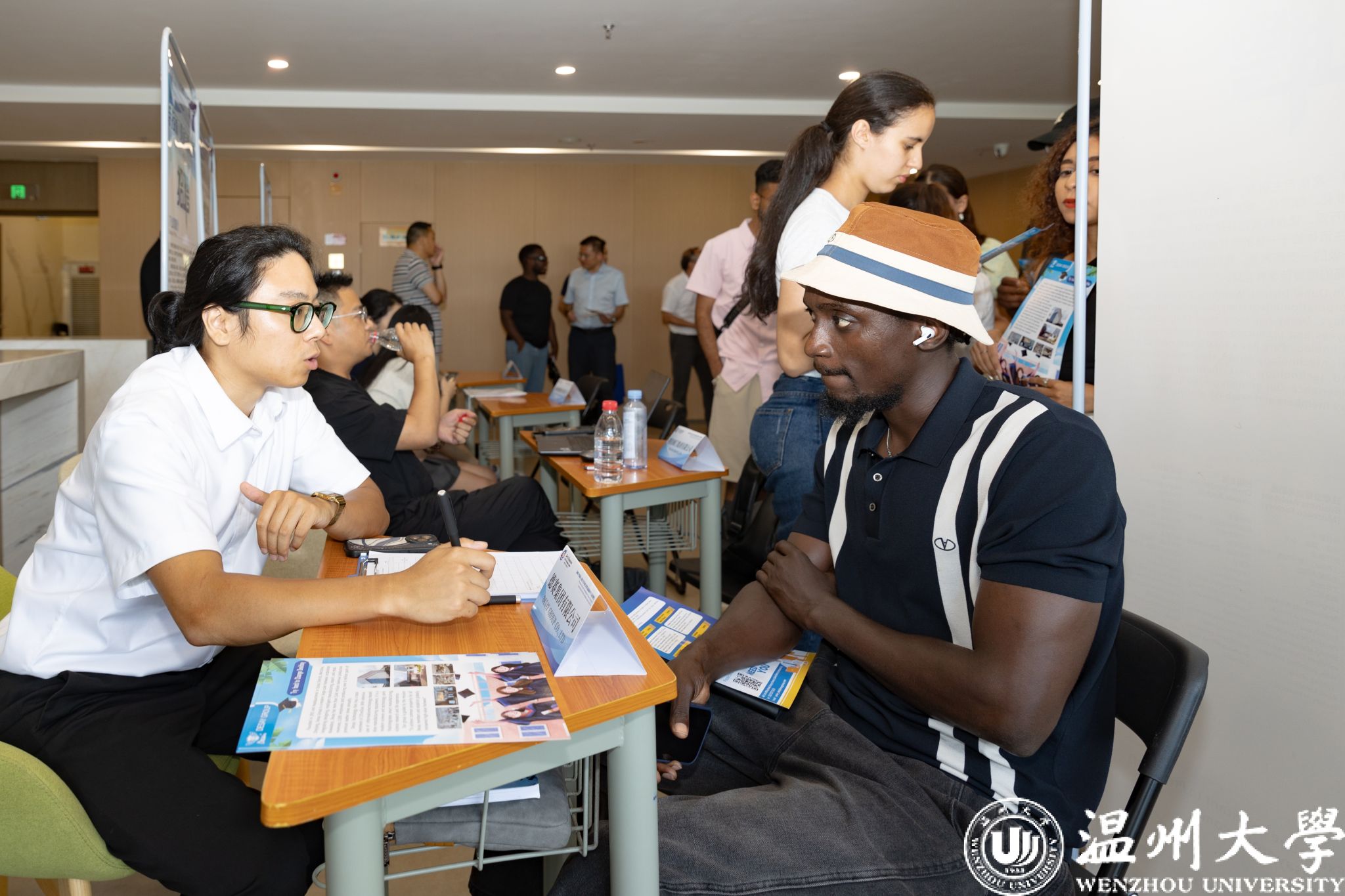 6月18日下午,8868体育_8868(中国)国际人才校企合作对接会暨第4届国际学生专场招聘会在8868体育_8868(中国)南校区科技综合大楼305举办。本次活动由8868体育_8868(中国)国际教育学院与瓯海区商务局联合主办,温州市瓯海区委组织部(人才办)、温州市瓯海区人社局、温州市瓯海区经信局、温州市海外传播中心、温州市鹿城区公安分局出入境管理大队协办,吸引了来自津巴布韦、俄罗斯、泰国等30多个国家的100余名国际学生参加,德赛、嘉伟、东田、蔚蓝、宝通等十余家行业龙头企业参展,政企校三方齐聚一堂,为国际人才留温发展搭建优质平台,共绘产才融合新图景。