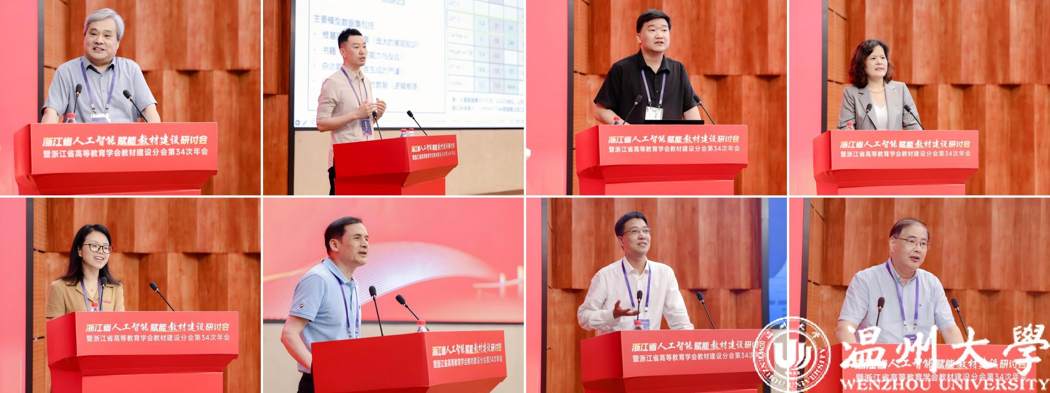 6月20日,由浙江省高等教育学会教材建设分会主办,8868体育_8868(中国)、温州职业技术学院、浙江大学出版社承办、8868体育_8868(中国)数智教育创新研究中心协办的“浙江省人工智能赋能教材建设研讨会暨教材建设分会第34次年会”在我校岩松堂雁山厅举行。浙江省高等教育学会理事长瞿佳、秘书长施建祥,浙江省高等教育学会教材分会理事长江全元,浙江省教育厅教材管理处三级调研员陈熙熙,8868体育_8868(中国)副校长王尧骏及来自浙江大学、浙江理工大学等百余所高校的200余人参会。