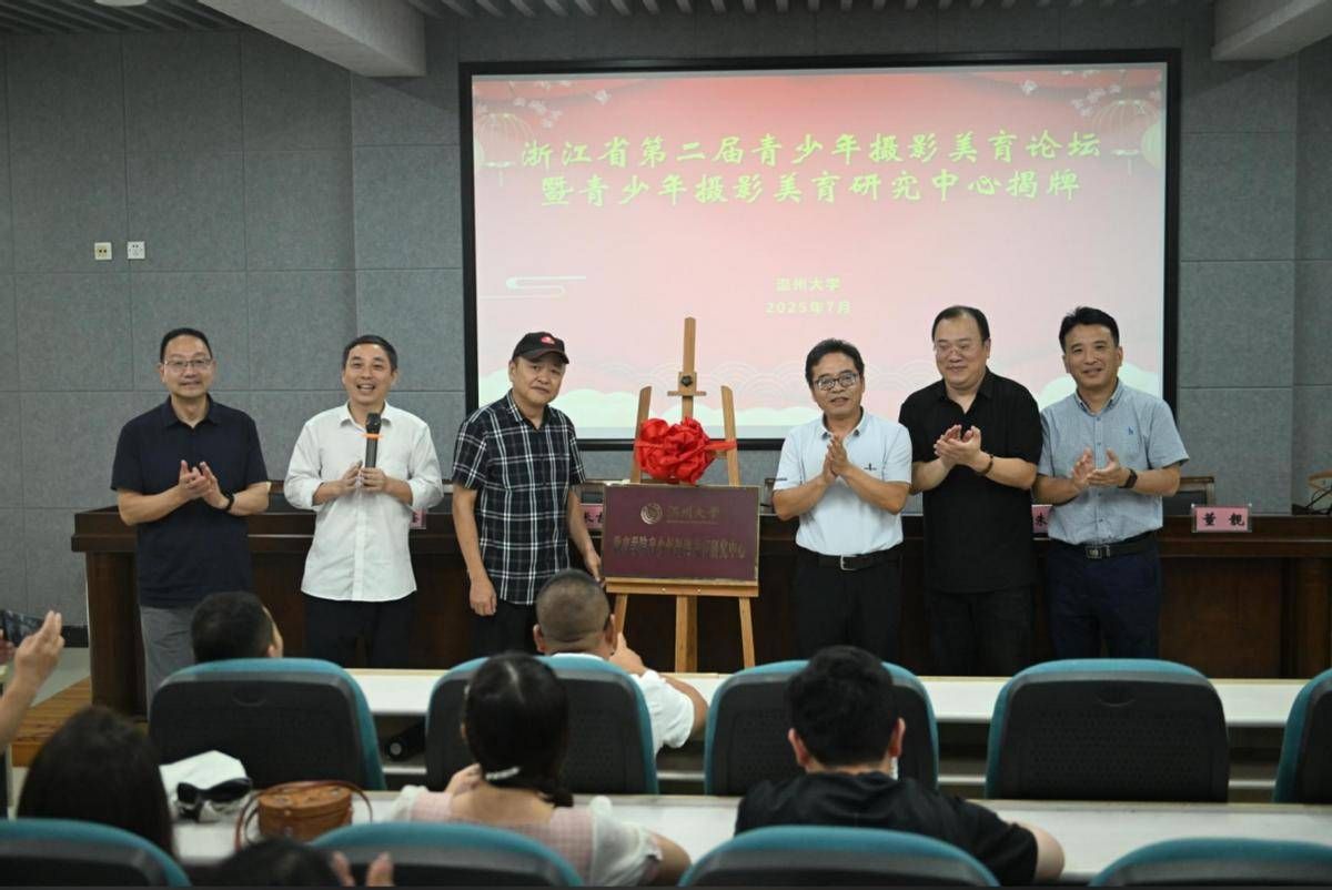 8868体育_8868(中国)教育学院院长李长吉教授和温州市摄影家协会主席金培林共同为青少年摄影美育研究中心揭牌,全国青少年摄影教育指导委副主任董靓、温州市摄影家协会副主席兼秘书长朱永春、浙江工贸职业技术学院教职工摄影协会会长李向荣到会祝贺。来自幼儿园、中小学、职校、教育管理部门、高校等一线师生60余人参与活动。