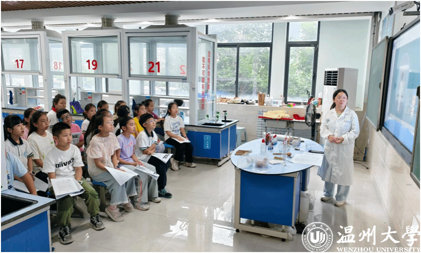 “以前觉得做实验按步骤来就行,现在才明白‘教’比‘做’更考验真本领。”队员陈同学在实践日志中写道。为提升服务质量,化材学院前期开展“实验教学技能”“沟通技巧”等专题培训,党员教师全程跟踪指导。实践期间,团队还完成了《中小学趣味化学课程设计》,提炼出“安全可控、成本低廉、趣味互动 ”的科普课程开发标准,为后续实践积累了宝贵经验。