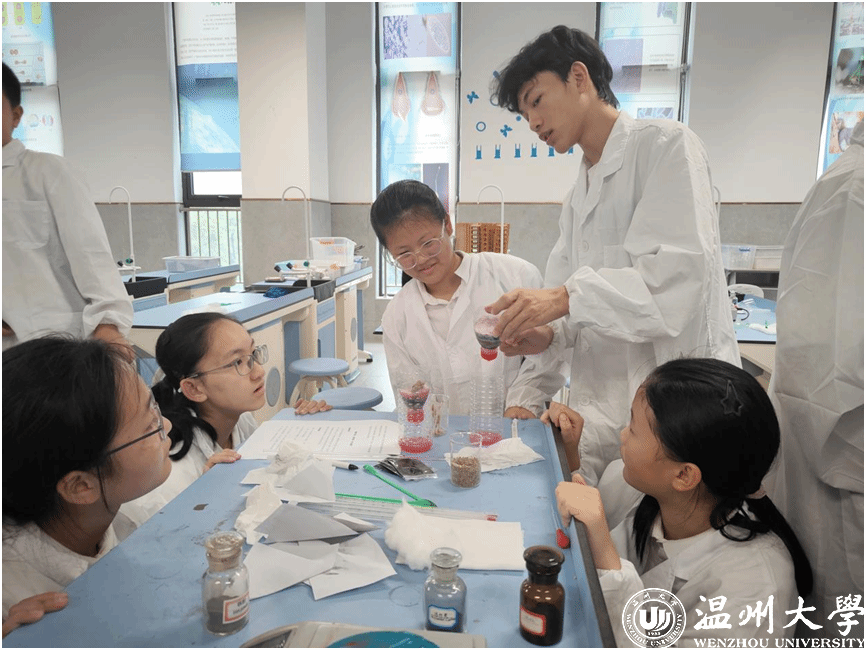 据学院学生工作负责人介绍,学院党委年初便擘画“党建 +”协同育人蓝图,通过党员教师带队、学生党支部牵头,推动实践队与中小学建立长效合作机制。依托专业党建品牌,学院持续深化家校社多元协同育人,助力大中小学科学教育一体化建设。在南浦实验中学,团队联合该校开展“电池里的环保密码”主题党日活动,党员师生将废旧电池回收实验带入课堂,既传授了科学知识,更播撒了生态文明的种子。