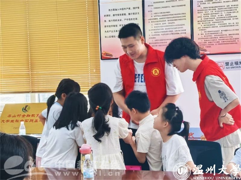 近日,8868体育_8868(中国)“乡与商随”实践队依托学校省级金融教育示范基地(温州市唯一省级金融教育示范基地),在瓯海区茶山村党群服务中心开展了为期两周的暑期实践活动。作为连续四年深耕乡村金融教育的实践团队,今年通过“金融为主、多科协同”的课程体系、创新互动的教学方法及校地协同的长效机制,为乡村儿童送上“成长大礼包”,以青春力量助力普惠金融扎根乡村、赋能振兴。