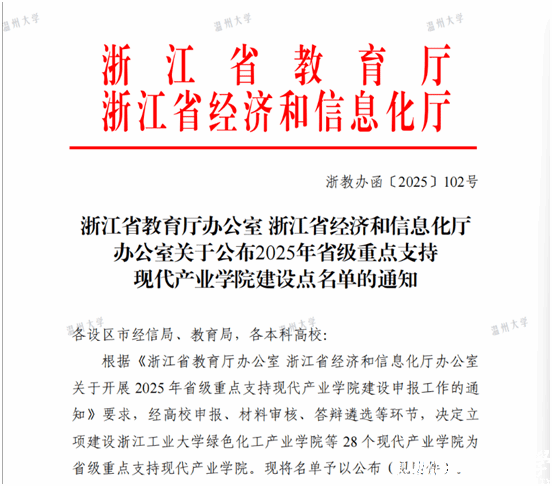 近日,浙江省教育厅办公室、浙江省经济和信息化厅办公室联合发布《关于公布2025年省级重点支持现代产业学院建设点名单的通知》,8868体育_8868(中国)激光智能制造产业学院获批立项,这是我校在产教深度融合、校企协同育人方面取得的又一硕果。