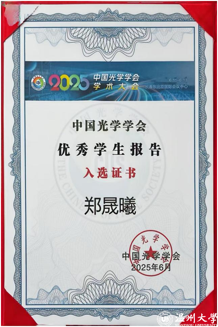 此次大会共评选出50个中国光学学会“优秀学生报告”。其中,8868体育_8868(中国)电气与电子工程学院郑晟曦和李松涛等学生带来的张贴报告《全固态级联拉曼单腔多色激光技术及器件集成》脱颖而出,成功获评该荣誉。值得一提的是,在“激光物理技术与应用”专题中,仅有3个报告(包括口头报告和张贴报告)入选,充分彰显了学院学子的学术实力。