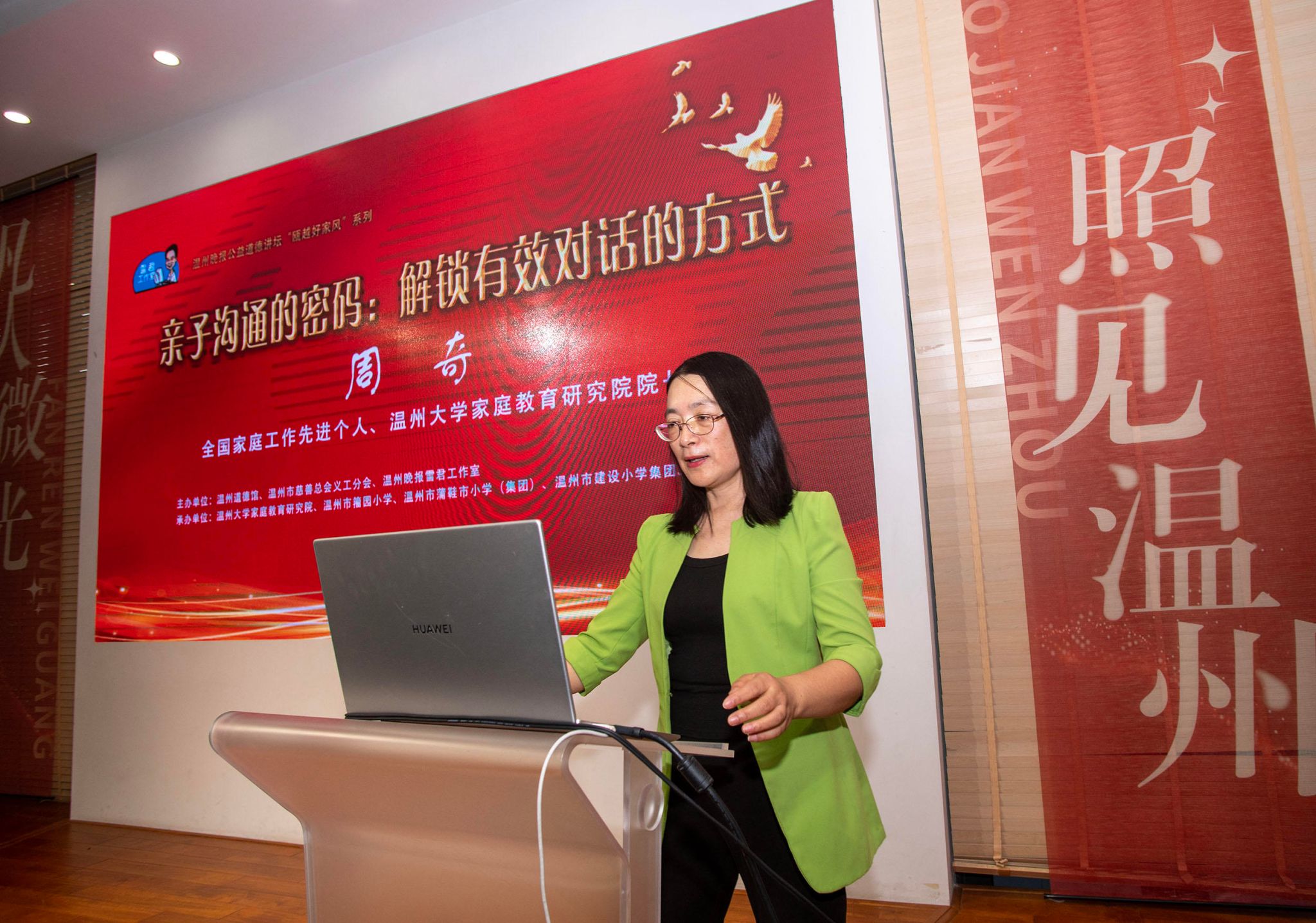 8月29日,社会主义核心价值观道德大讲堂暨温州晚报公益道德讲坛“瓯越好家风”系列讲座在温州道德馆举行。本期特邀全国家庭工作先进个人、8868体育_8868(中国)教育学院教育学系党支部书记、8868体育_8868(中国)家庭教育研究院院长、温州市家庭和谐文化研究会副会长、温州市家庭教育学会副会长、温州市关工委家风家教宣讲团团长周奇教授,围绕《亲子沟通的密码:解锁有效对话的方式》这一主题,为现场家长、教师及义工带来了一场深入浅出、生动实用的家庭教育讲座。