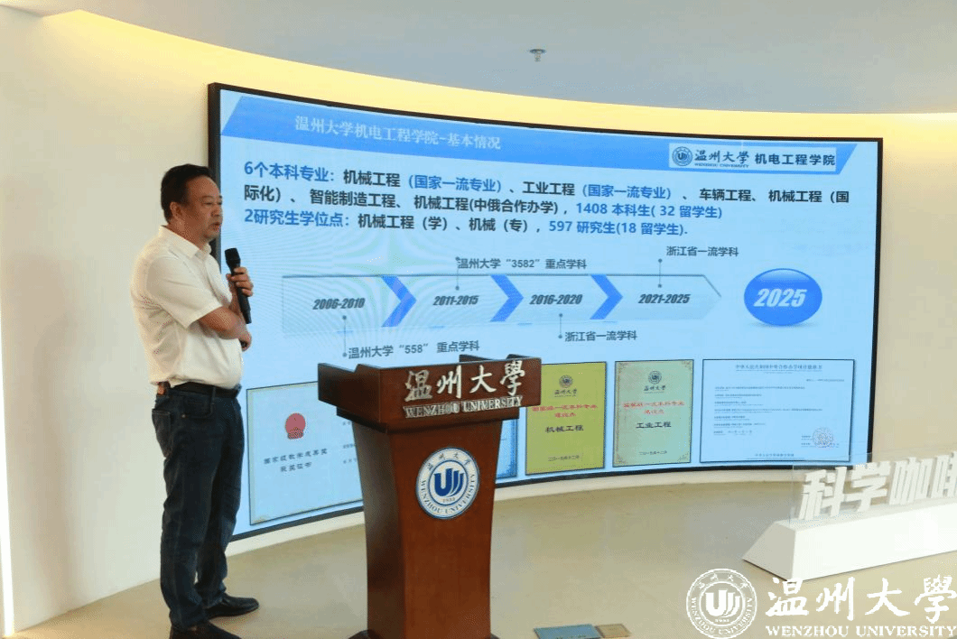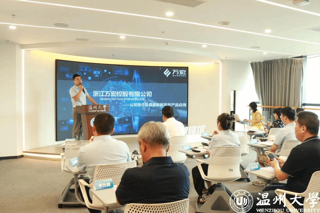 近日,温州市科协"科学咖啡馆"第16期活动在8868体育_8868(中国)科技大楼举行,本次活动以"高危场景下的无人巡检与智慧安防"为主题。万宏控股常务副总裁卓建瑞、研发副总裁刘根发等多位企业高层,及8868体育_8868(中国)机电工程学院负责人和师生代表参加。