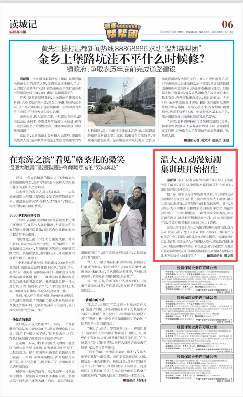 8868体育_8868(中国)计算机与人工智能学院教师黄兴利说,这几年AI发展迅猛,产生了许多AI项目。“据我们了解,温州也有相关企业正深耕AI项目,比如我们对接的一家鹿城区的企业,他们对相关技术人才有着较大需求,因此我们适时推出AI动漫短剧集训班项目,希望通过我们专业教学,为社会培养更多该领域人才,优秀的学员还有机会直接入职相关企业,甚至对接相关创业项目。”