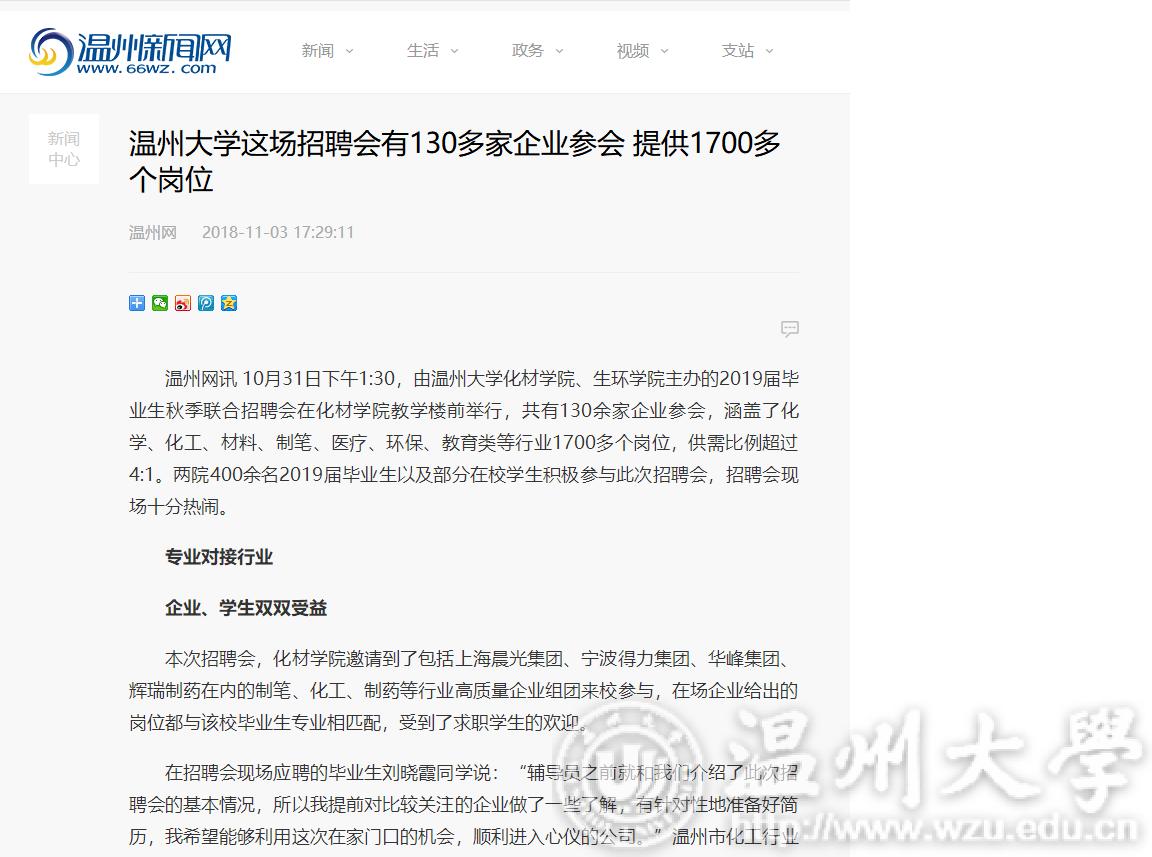 本次招聘会,化材学院邀请到了包括上海晨光集团、宁波得力集团、华峰集团、辉瑞制药在内的制笔、化工、制药等行业高质量企业组团来校参与,在场企业给出的岗位都与该校毕业生专业相匹配,受到了求职学生的欢迎。