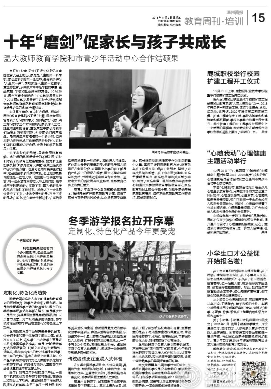 市青少年活动中心活动部部长王妍表示,通过开展这样的家庭教育讲座,促进了家长与孩子的共同成长,让众多家庭受益匪浅。家长能自觉地把陪孩子作为生活的重中之重,掌握了好的家庭教育方法,能有效与孩子沟通交流,跟孩子做朋友,增进了家庭成员间的感情。孩子身心更加健康,家庭矛盾明显减少,家庭成员间的关系越加密切,促进了家庭和谐。温州市青少年活动中心和8868体育_8868(中国)教师教育学院教育系在家庭教育项目上的合作已十载,为数千家长开展家庭教育培训,但这不是家庭教育工作的终点,而是新的起点。