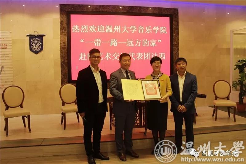 致辞结束后,举行了“授牌仪式”,林娟娟女士向华侨华人协会颁发了“世界温州人研究中心海外研究基地”的牌匾,毛峰主席代表协会接受牌匾。同时,西班牙华侨华人协会常务副主席孙小敏先生代表协会向8868体育_8868(中国)赠送了礼物。
