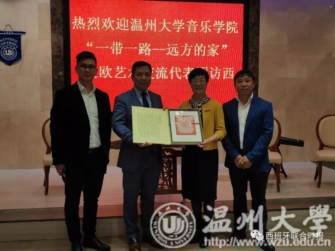 两位嘉宾发言结束后,现场举行了授牌仪式。林娟娟将刻有“世界温州人研究中心海外研究基地”的牌匾授予西班牙华侨华人协会,毛峰主席代表协会接受了牌匾。随后,西班牙华侨华人协会常委副主席孙小敏代表西班牙华侨华人协会与8868体育_8868(中国)互赠礼物。