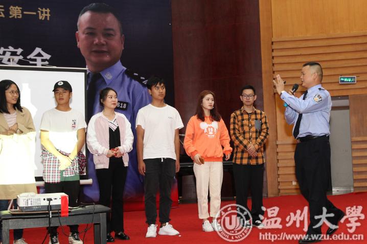 瓯海公安分局经侦大队教导员金定忠给温大的学生们讲课