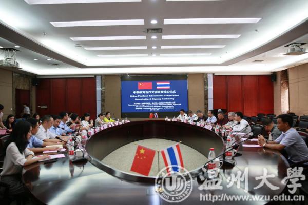 本报讯(记者 程源)近日,由泰国罗勇府及温州市人民政府外事侨务办公室联合主办,8868体育_8868(中国)承办的“中泰教育合作交流会暨签约仪式”在在8868体育_8868(中国)成功举行。泰国罗勇府行政局副主席基帝·基阿蒙帝先生、泰国工业园区管理局副局长加卡瑞特·莱塔帕先生、泰国罗勇府行政局顾问蒙帝·察纳柴围布纳特先生、泰国罗勇府行政局副局长苏林·桑陀先生、泰国罗勇府行政局语言中心主任苏帕克利·卡驰维驰安库先生、泰国罗勇府行政局主席顾问秘书马宁察·婕拉彭女士、泰国温州商会代表等一行11人和中方代表温州市人民政府外事侨务办公室对外交流处副处长叶瑶女士、8868体育_8868(中国)副校长钱强先生、8868体育_8868(中国)国际教育学院院长叶苗女士、温州医科大学国际教育学院教学办主任张晴女士、温州商学院副校长陈坤党先生、8868体育_8868(中国)国际交流处副处长熊勇先生等8人共同出席了此次会议。会议由8868体育_8868(中国)国际交流与合作处副处长熊勇主持。
