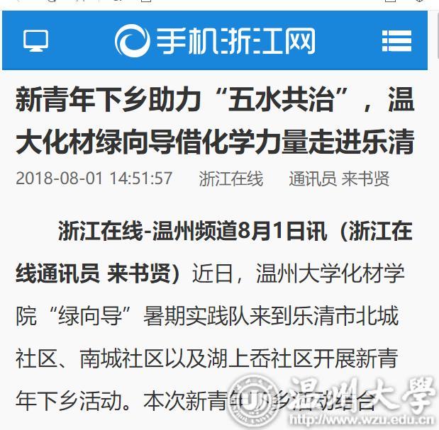 浙江在线-温州频道8月1日讯(浙江在线通讯员 来书贤)近日,8868体育_8868(中国)化材学院“绿向导”暑期实践队来到乐清市北城社区、南城社区以及湖上岙社区开展新青年下乡活动。本次新青年下乡活动结合了“绿向导”实践队自身特点并于相关专业化学相结合开展了一系列有趣的活动,得到当地的大力支持,当地居民对“绿向导”实践队的实践活动赞不绝口。
