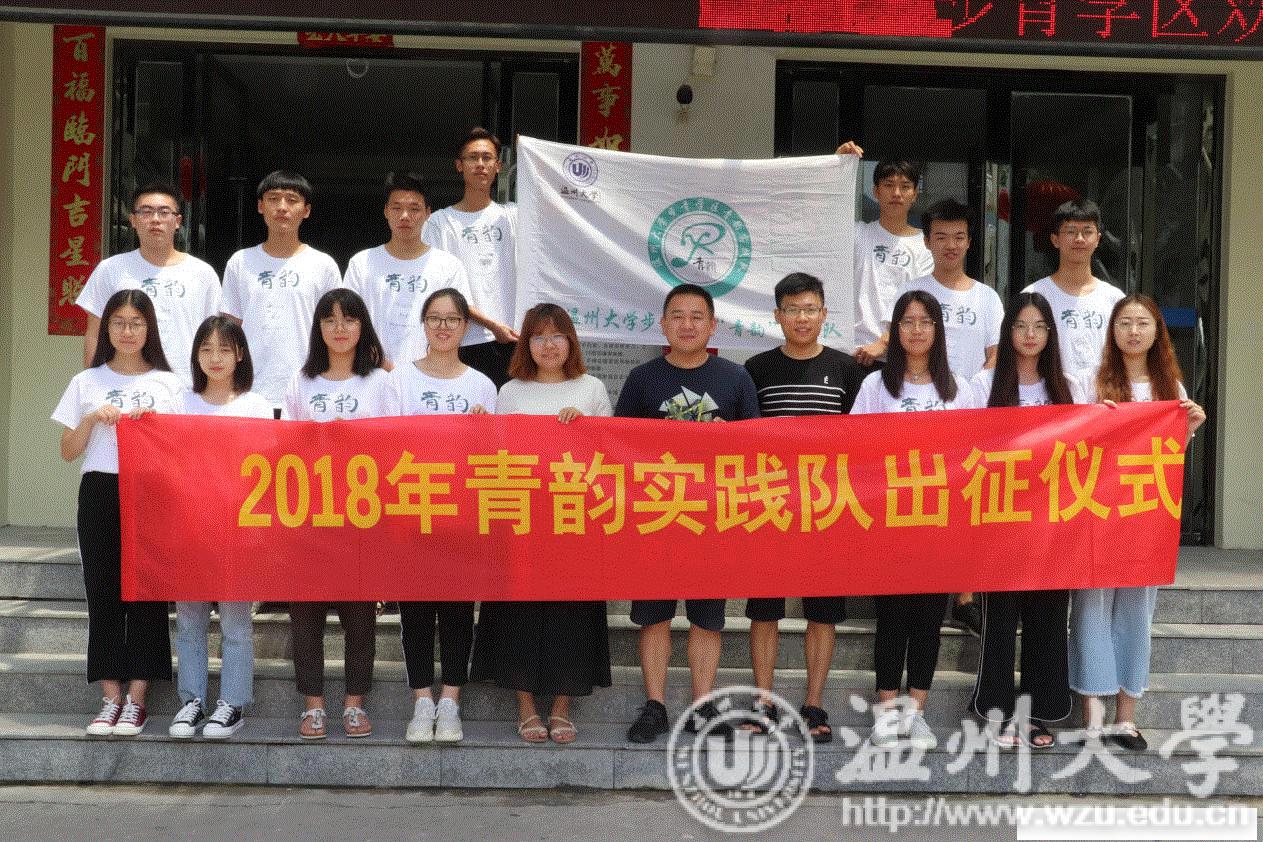 2018年7月16日上午,8868体育_8868(中国)步青学区“青韵”暑期社会实践队出征仪式在8868体育_8868(中国)A9-207会议室举办。出席会议的人员有步青学区党委副书记张朝辉、实践队指导老师王召收、孙玮玮以及实践队全体成员。