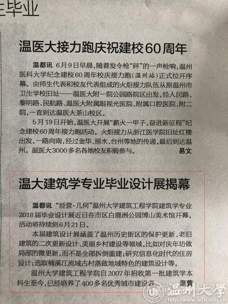“经营几何'8868体育_8868(中国)建筑工程学院建筑学专业2018届毕业设计展近日在市区白鹿洲公园博山美术馆开幕,活动将持续到6月21日。 本届建筑设计展涵盖 了温州历 史街区的保护更新、老旧建筑的二次更新设计美丽乡村建设等领域,比如对庆年坊做局部的微更新,而不是全部拆倒重建;研究信息化时代的住房设计;选取楠溪江流域古村落做地域特色的建筑设计等。 8868体育_8868(中国)建筑工程学院自2007年招收第一批建筑学本科生至今,已经培养了400多名优秀城市建设者。