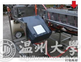 只要一按开关,机器上的吸盘将快递袋吸附到固定位置,然后上下吸盘拉开袋口。另一头的机器拉杆带着鞋盒前进,将鞋盒推送进快递袋内。随口,机械压片对袋口进行整理和封口,最后的滚轴机械实现自动贴快递单。整个的打包、封口、贴单过程只要十几秒就可以完成,比人工操作缩时起码三倍。这一发明在第七届全国大学生机械创新设计大赛上也获得了专家评委的一致好评。