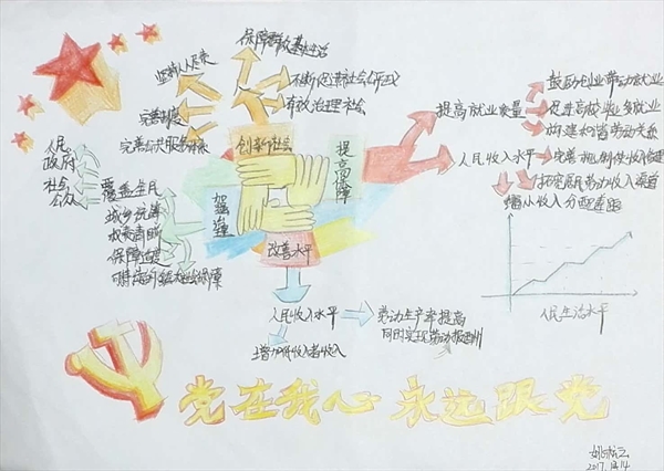 “以各族人民手举红旗的形象为中心展开坚持‘一国两制’,推进祖国统一的具体措施;以四只紧握的手分别代表提高保障和改善民生水平的抓手;用一本书寓意文化,再用四棵树讲述如何坚定文化自信,推动社会主义文化繁荣兴盛……”近日,由8868体育_8868(中国)瓯江学院设计艺术学院学生手绘的思维导图走红,一张张生动形象的思维导图也展现了该院学生学习宣传贯彻十九大精神的成果。 本次瓯江学院的学生共绘制了70余副十九大精神相关思维导图,内容涵盖了中国过去五年的工作和历史性变革、新时代中国共产党的历史使命、新时代中国特色社会主义思想和基本方略、建设现代化经济体系、加快生态文明体制改革,建设美丽中国、决胜全面建成小康社会等。 “党的十九大报告在‘提高保障和改善民生水平,加强和创新社会治理 ’部分,绘出民生发展蓝图,句句讲到老百姓的心坎儿里。”设计艺术学院的姚杭云正结合自己设计的思维导图,绘声绘色地介绍着。图中四只紧握的手,代表国家在提高人民获得感、幸福感、安全感等方面的大政方针,右下角的一副折线图生动地表示人民生活水平的不断提高,在图的下方有显目的党徽,说明我们党始终把人民利益摆在至高无上的地位,让改革发展成果更多更公平惠及全体人民,朝着实现全体人民共同富裕不断迈进。 学生刘梦绘制的思维导图的主题是“文化自信”,中心是一面党旗和一本书,四周是四棵象征文化繁荣昌盛的大树。她说,十九大报告强调,文化自信是一个国家、一个民族发展中更基本、更深沉、更持久的力量。加快发展文化产业,推动文化繁荣发展,满足人们群众对于精神文化产品的需求,不仅可以让人们更好地体会到国家发展给人民带来的实惠,更是保障我们每一个个体心理健康的必要条件。“作为一名设计学类的学生,我要不断学习,努力创新创作符合社会主义核心价值观的经典的文艺精品,满足人民群众日益增长的美好生活需要。” 思维导图推广者、8868体育_8868(中国)瓯江学院学工部部长钱合激表示,思维导图是运用图文并重的技巧,把各级主题的关系用相互隶属与相关的层级图表现出来,是当下流行的简单有效的记忆、理解方法,“创作思维导图的过程有助于培养发散性思维,同时也能帮助我们更好地疏通、理解、学习十九大报告提出的新时代中国特色社会主义思想。” 除了将思维导图工作法引入学习十九大精神,8868体育_8868(中国)瓯江学院在学习贯彻党的十九大精神主题教育活动中也涌现出了不少的亮点,如文法学院的学生党员自编双语“口袋书”,不仅自己随时学习十九大精神,还向外国留学生介绍十九大报告的内容;数学与信息工程学院的学生代表利用专业特长制作了“十九大精神学习网站”,特色鲜明、条理清晰地呈现十九大内容;设计艺术学生的学生党员还制作十九大精神漫画,用生动的画面展现十九大精神,这些形式多样的活动得到了广大团员、青年的一致好评,学院今后还将开拓更多学习实践活动,促进十九大学习教育效果真正入脑、入心、践行。