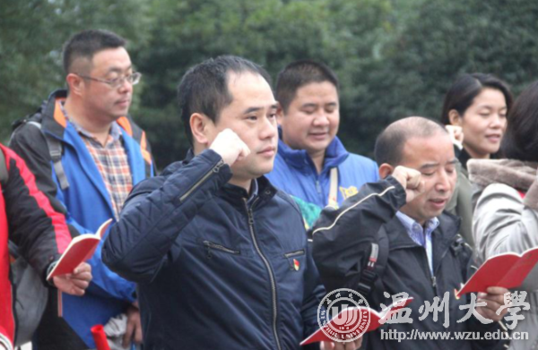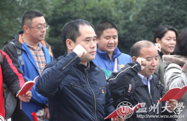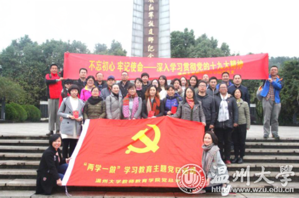 11月25日,8868体育_8868(中国)教师教育学院党总支来到著有“浙江延安”之称的平阳革命根据地,开展了“不忘初心,牢记使命”为主题的党日活动暨教职工革命传统教育活动。 当天,教师教育学院的党员教师参观了温州浙南(平阳)革命根据地旧址群,一同深入“浙江延安”,唤醒红色回忆。登上三十八级象征着出征日期的台阶,踩过乱石铺就的代表着征途艰险小路,站在北上抗日出征门前,仿佛还能想起当年老区乡民门夹道欢送依依不舍的情景和北上出征敌寇,捍卫我中华国威的铮铮誓言。远征北上的战场硝烟,已经在历史的浪潮中湮没,唯那栩栩如生的白石板墙抗战浮雕再现了曾经的峥嵘岁月。接着,学院党总支书记杨立淮带领教师党员重温入党誓词、向革命先烈鞠躬默哀,唤起大家对那段红色岁月的记忆,并在党旗下表示要为党的教育事业奋斗终生的决心。