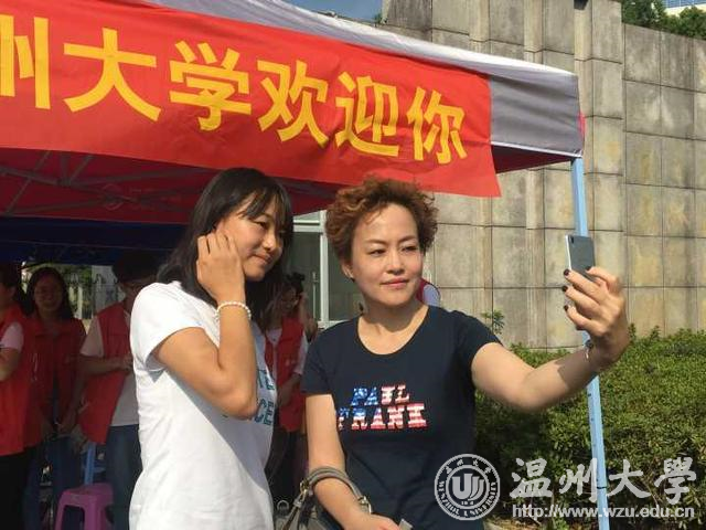 ▲45岁的吴静春和15岁的杨尚萍在迎新点自拍,两人分别是今年年纪最大和最小的大一新生,也打破了8868体育_8868(中国)年龄最大和最小新生记录。