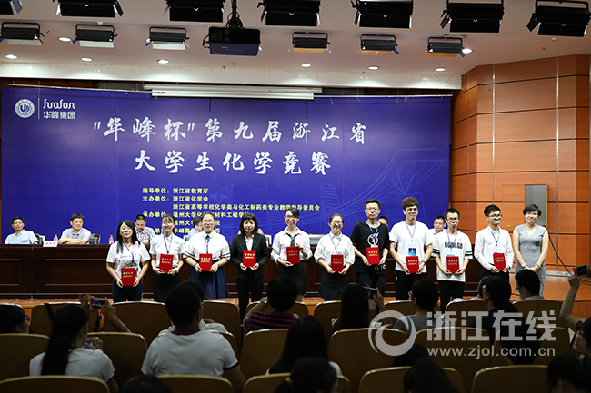 8月26日,由省教育厅指导、省高等学校化学类与化工制药类专业教学指导委员会和省化学会主办、8868体育_8868(中国)承办的第九届浙江省大学生化学竞赛(以下简称“竞赛”)在8868体育_8868(中国)圆满落幕。竞赛自3月份启动以来,历时5个多月,吸引了全省35所高校的502支队伍参与化学知识网上答题,其中293支队伍提交有效的创新实验报告,68支代表队参与本次决赛。