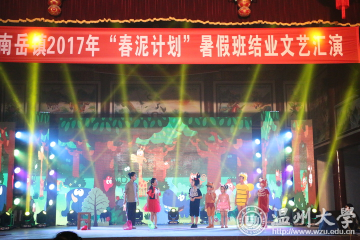 今天晚上,南岳镇春泥计划班结业汇报演出在南岳镇后塘文化礼堂火热上演。幼升小的开蒙礼、合唱、朗诵、舞蹈、越剧、儿童剧、服装走秀等11个形式多样的文艺节目赢得阵阵掌声。这场由南岳小学、南岳后塘校区春泥班孩子呈现的演出,是由8868体育_8868(中国)教师教育学院“知心姐姐”暑期实践队的成员编排组织,服装、道具均是出自成员之手。