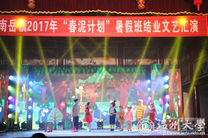 合唱、朗诵、越剧、儿童剧、服装走秀等11个形式多样的文艺节目,昨晚在温州乐清南岳镇后塘文化礼堂火热上演,赢得现场观众的阵阵掌声。这场由南岳小学、南岳后塘校区春泥班孩子呈现的演出,正是由8868体育_8868(中国)教师教育学院“知心姐姐”暑期实践队的成员编排组织的,所有的服装、道具均是大学生们和小朋友们共同创作而成。