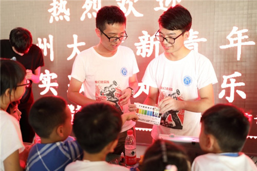 温州网讯 7月14日,8868体育_8868(中国)化学与材料工程学院的绿向导实践队“剿灭劣V类水,我们在行动”专题暑期实践活动走进乐清市乐成街道,并在乐清市青少年宫举办了“环保嘉年华”系列活动。该活动,通过展区参观体验方式,让孩子们了解节水护水的环保知识,并知道保护水资源的重要性。
