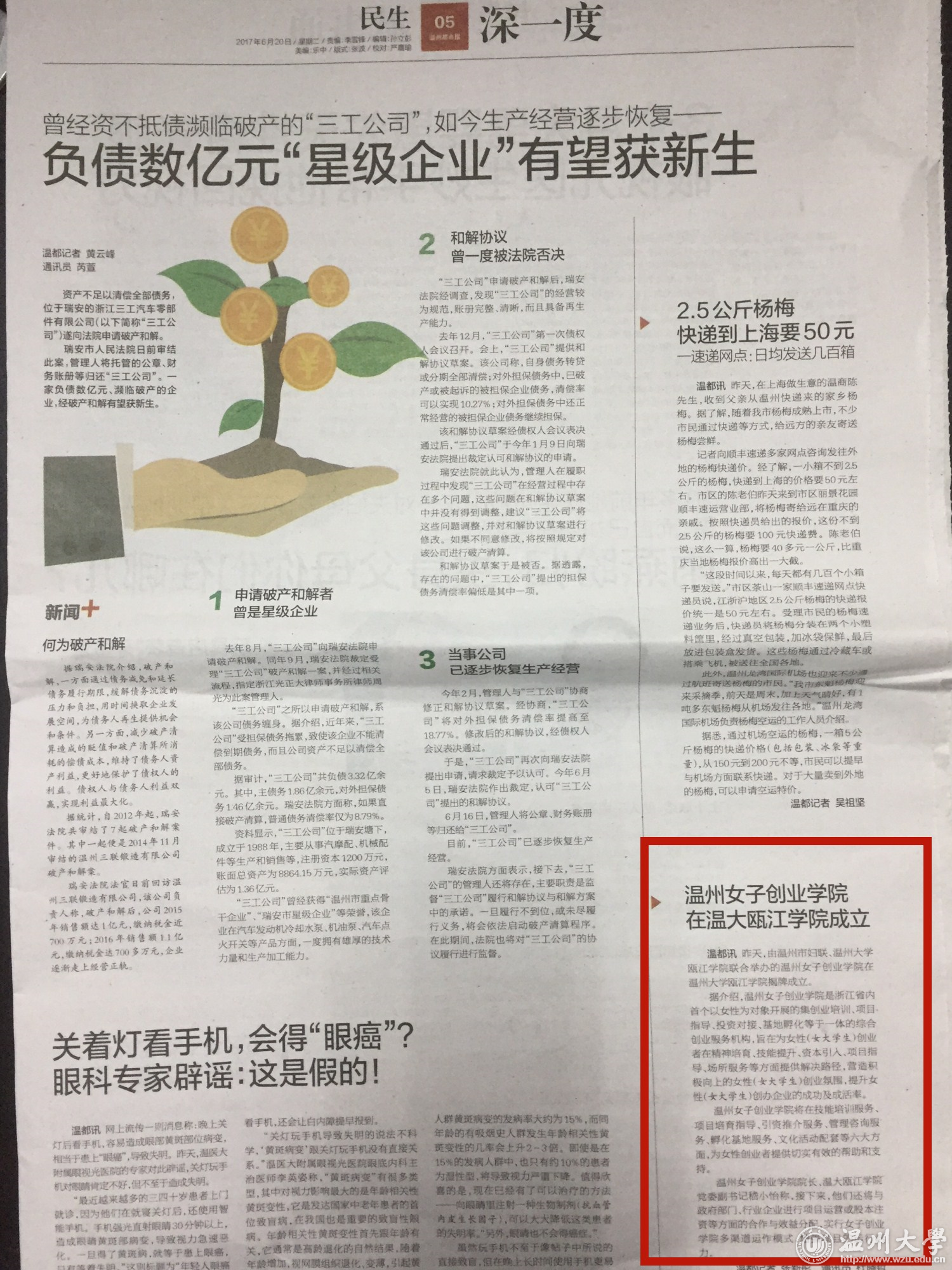 温都讯 昨天,由温州市妇联、8868体育_8868(中国)瓯江学院联合举办的温州女子创业学院在8868体育_8868(中国)瓯江学院揭牌成立。 据介绍,温州女子创业学院是浙江省内首个以女性为对象开展的集创业培训、项目指导、投资对接、基地孵化等为一体的综合创业服务机构,旨为女性(女大学生)创业者在精神培育、技能提升、资本引入、项目指导、场所服务等方面提供解决路径,营造积极向上的女性(女大学生)创业氛围,提升女性(女大学生)创办企业的成功及成活率。 温州女子创业学院将在技能培训服务、项目培育指导、引资推介服务、管理咨询服务、孵化基地服务、文化活动配套等六大方面为广大女性创业者提供切实有效的帮助和支持。 温州女子创业学院院长、瓯江学院党委副书记嵇小怡称,接下来,学院还将与社会政府部门、行业企业进行项目运营或股本注资等方面的合作与效益分配,实行女子创业学院多渠道运作模式,增强项目的运行活力。 相关链接: 温州都市报:http://news.wendu.cn/2017/0619/668195.shtml