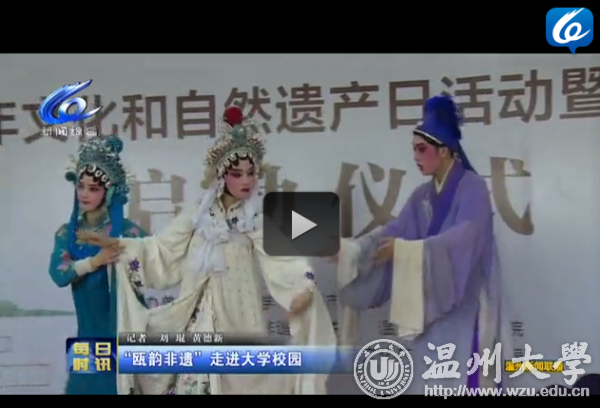 温州电视台新闻综合频道《新闻联播》栏目于2017年6月13日,报道了8868体育_8868(中国)瓯江学院承办的“瓯韵非遗 走进校园”——2017年文化和自然遗产日系列活动。报道时间共计41秒。 相关链接:http://v.dhtv.cn/201706/00043756.html
