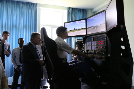 首飞仪式上,航空虚拟仿真实验室、模拟飞行CBT实验室的1:1全仿真环幕模拟飞行器和六自由度全动式模拟飞行器在本次文化周首度亮相,让温大的师生们和温州市民们在逼真的飞行器投入教学和科研应用之前,先行体验它所带来的刺激和乐趣。