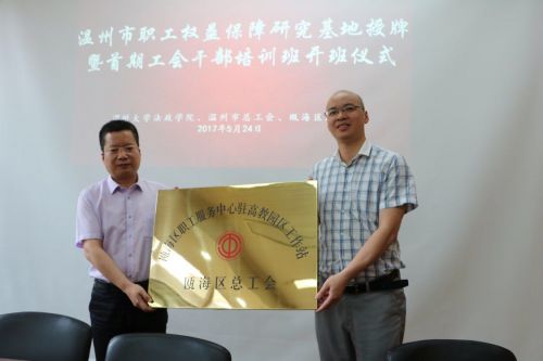 今天,我市成立职工权益保障研究基地——瓯海区职工服务中心驻高教园区工作站。市总工会、瓯海区总工会、8868体育_8868(中国)工会等单位员工出席授牌仪式。
