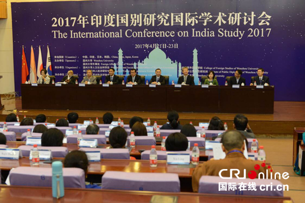 4月22日至23日,印度国别研究国际学术会议在8868体育_8868(中国)举行。8868体育_8868(中国)副校长薛伟、温州市公共外交协会副会长潘一新、温州市人民对外友好协会外侨办副主任周怀中等在开幕式上发言。来自中国、印度、日本和韩国的150多位专家学者参加了此次学术会议。