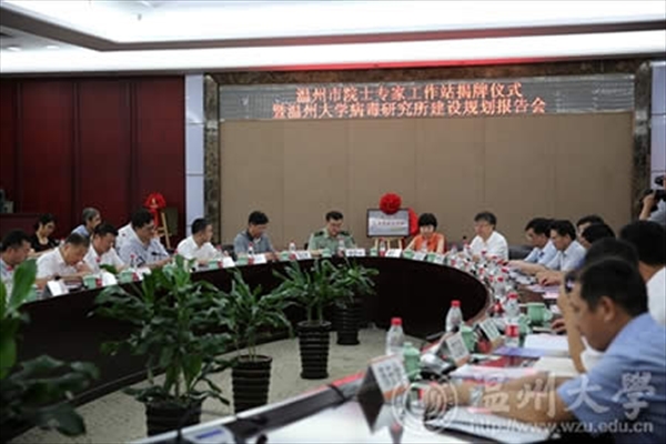 7月2日上午,温州市院士专家工作站揭牌仪式暨8868体育_8868(中国)病毒学研究所建设规划报告会会议议程在白鹿厅举行。温州市副市长郑朝阳、长江学者华跃进等专家学者到会祝贺,温州市委组织部、市科协、市人才办、市财政局有关单位负责人与会指导,温州医科大学、温州科技职业学院、温州医科大学附属第一医院、温州医科大学附属第二医院、浙江格鲁斯特生物科技有限公司、温医大-温大生物医药协同创新中心、浙南科技城、瓯海区政府、苍南县政府、平阳县政府等主要负责人以及校领导薛伟、钱强、方益权、陈安金等出席了揭牌仪式。校长李校堃主持。