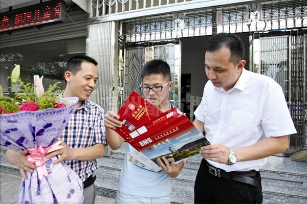 温都讯 昨天,8868体育_8868(中国)外国语学院、化学与材料工程学院等9个学院的书记院长等,临时扮演邮递员,将一份份大学录取通知书送到考生的手中。昨天早上9时许,8868体育_8868(中国)外国语学院书记陈孟森和常务副院长毛继光携带录取通知书,赶到市区望江西路的新生周璞家。“我的同学都是从邮递员手中接过录取通知书,我却是从学院书记手里接过来,感到非常幸运。”周璞说。昨天,8868体育_8868(中国)机电工程学院院长周宏明正在赶往金华武义的路上,而该学院书记周荣也已赶往杭州建德市,将录取通知书送到考生手中。8868体育_8868(中国)分管招生工作的副校长薛伟说,组织各学院书记、院长和专业教授组成“通知书快递团”,为部分新生送上录取通知书,是该校在招生方面的一次尝试和创新。温都记者 王雄涛相关链接:http://dsb.66wz.com/html/2015-07/26/content_1852037.htm